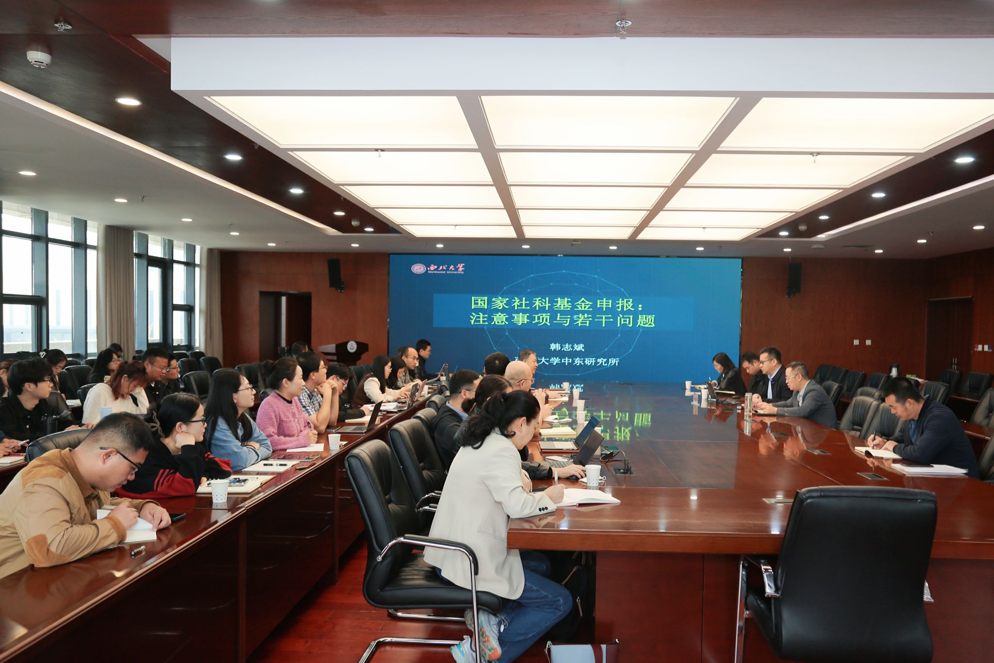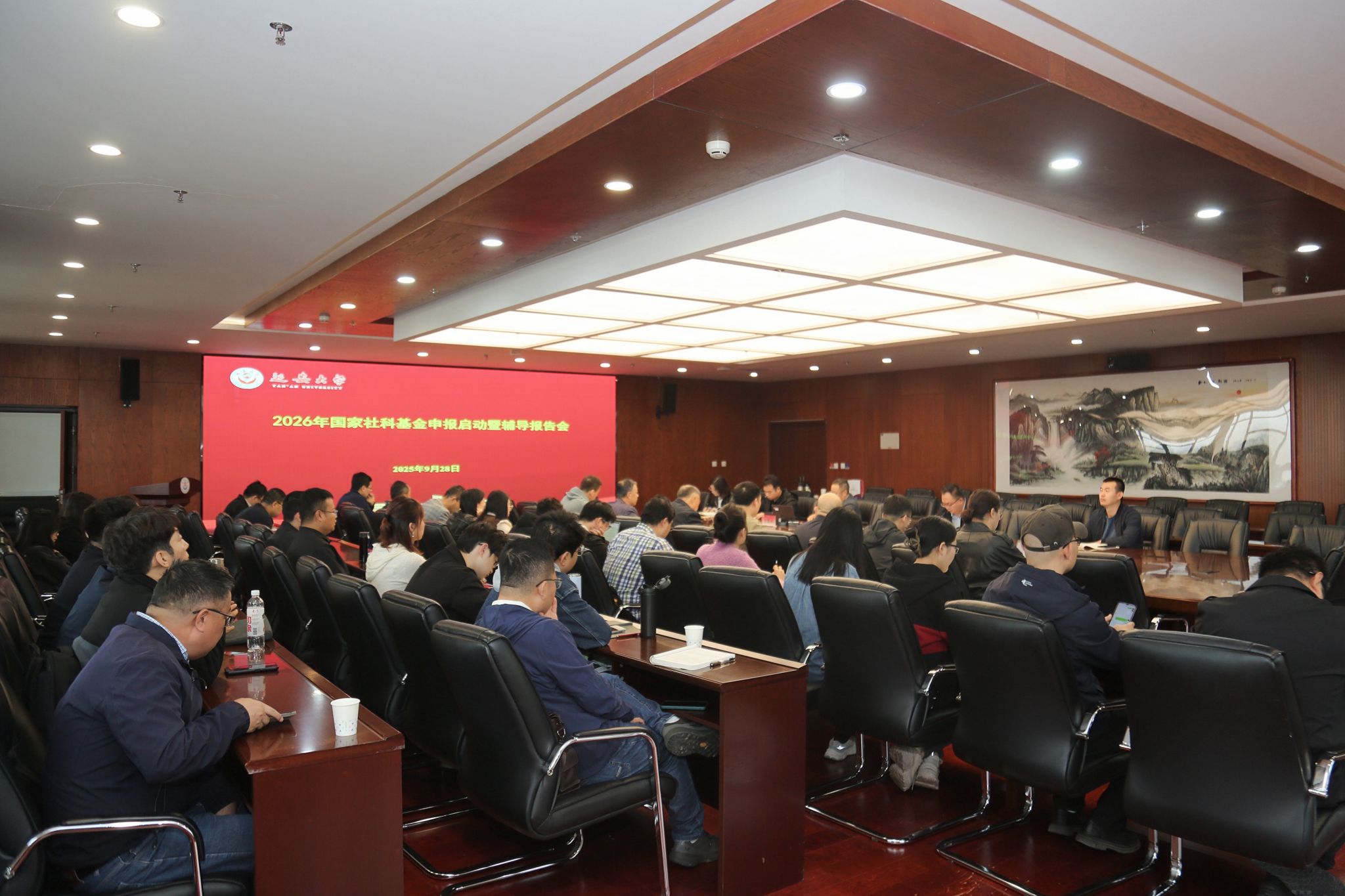 本网讯为扎实推进国家社科基金项目申报工作,全面提升高层次科研项目的申报质量与立项率,9月28日上午,米兰在行政楼二楼会议室召开了2026年国家社科基金项目申报启动暨辅导报告会。各文科学院院长、科研副院长、科研秘书、骨干教师及社科处全体人员参加会议。米兰副校长吕磊出席会议,西北大学二级教授、博士生导师韩志斌受邀作国家社科基金项目专题辅导报告。社科处处长王俊虎主持会议。