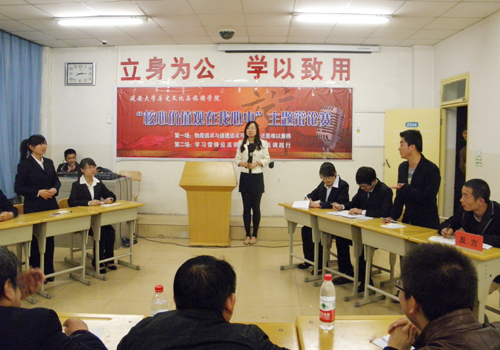 本网讯3月30日晚,历史文化学院在周扬楼教室举办了以“核心价值观在我心中”为主题的辩论赛。学院党委书记侯虎虎、辅导员李生策及学院部分优秀辩手担任了这次辩论赛的评委。