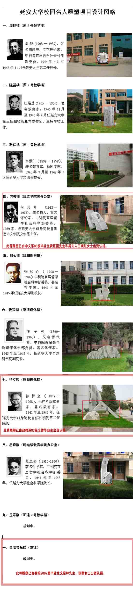2、认捐和资助校园雕塑、碑石。