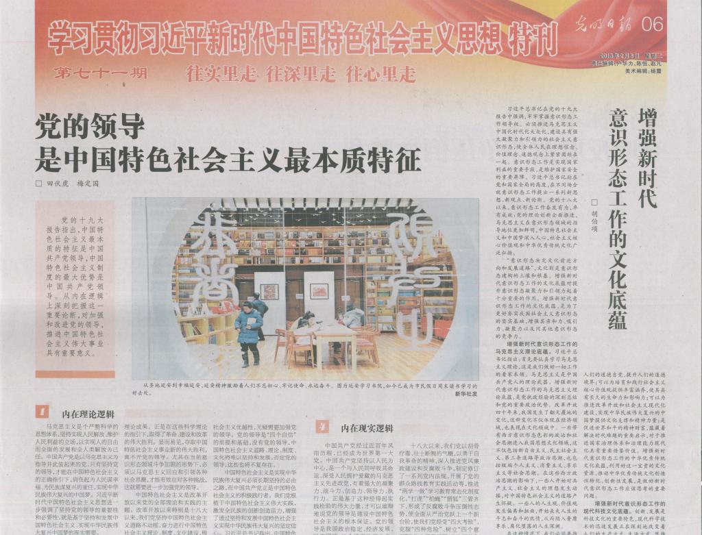 米兰党委副书记田伏虎和马克思主义学院副教授梅定国的理论文章《党的领导是中国特色社会主义最本质特征》,2月6日在《光明日报》第六版学习贯彻习近平新时代中国特色社会主义思想理论特刊发表。