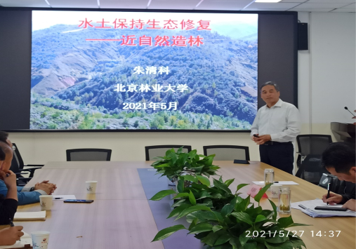报告会上,朱清科教授以水土保持生态修复为主题,结合相关研究成果,从黄土区林草植被及造林技术发展历程、半干旱黄土区植被恢复与重建途径、黄土高原水土保持林近自然构建、华北土石山区近自然植被营造技术等方面系统的介绍了近自然造林技术的集成与应用示范推广。