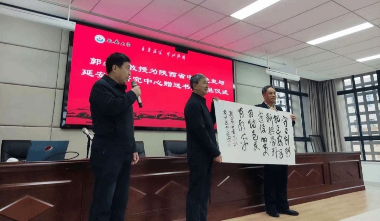 讲座开始前,郭教授为陕西省中共党史与延安学研究中心捐赠了延安学系列著作120余册,并赠送了书法作品。赠送仪式由政法与公共管理学院院长冯志宏教授主持。