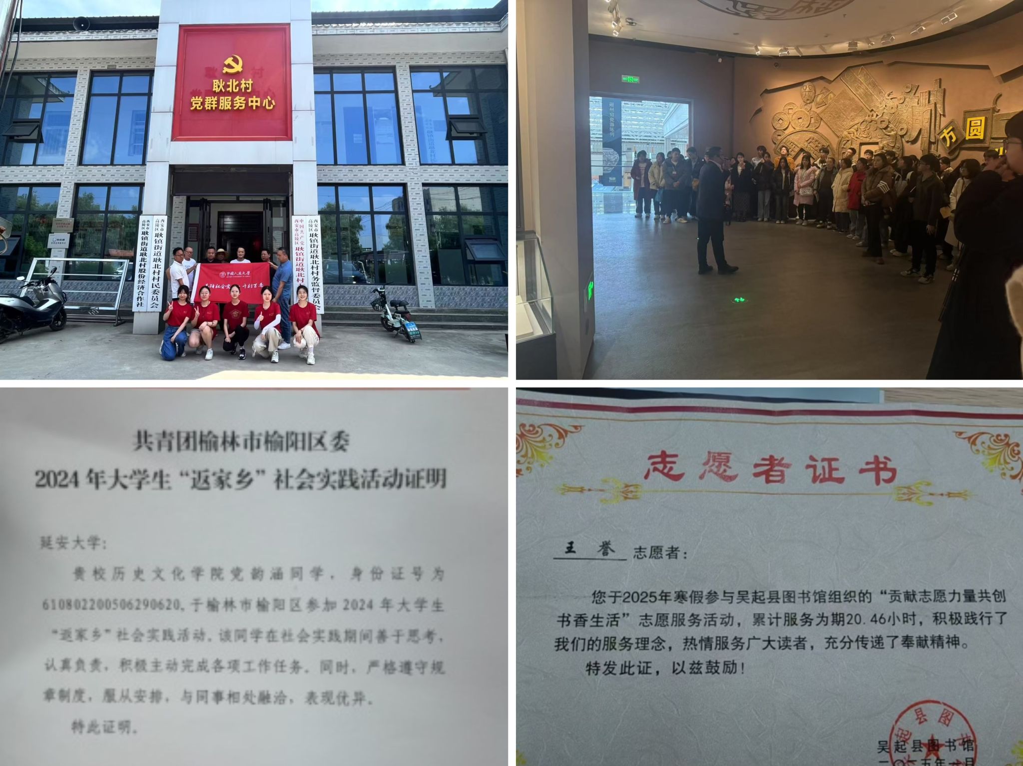 学院22级高上津同学过了一个忙碌而充实的假期,她积极参加了当地团县委组织的大学生返乡志愿服务活动。活动期间,高上津参与了共青团绥德县第十六次代表大会的会务工作,帮助团县委整理团员资料,走访慰问困难青少年,还充分发挥自己的特长,走进社区义写春联。此外,高上津组织团队走访调研绥德县的剪纸、面花、泥塑等非物质文化遗产,亲自体验各种非遗工艺品的制作。这些实践活动,让高上津深刻理解了“以梦为马,不负韶华”的含义,意识到青春不仅是追梦,更是担当。此外,23级党韵涵、梁越哲同学也在当地团县委进行了一个月的工作见习;23级王誉同学在吴起县参与了县图书馆组织的志愿服务活动;24级杨曙宇、张文伯、侯璐瑶和侯翔等同学也在实践岗位上展现了延大学子务实的特质,受到了所在单位的肯定和表扬。
