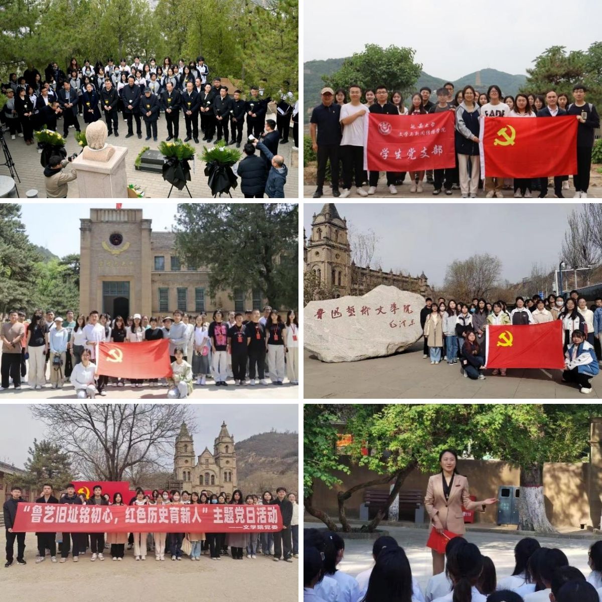 革命旧址现场教学深化理论认知。学院积极开展红色革命旧址现场教学活动,组织学生前往清凉山新闻纪念馆、宝塔山等革命旧址,依托丰富的历史资源打造生动课堂。在清凉山新闻纪念馆,学生面对泛黄的《解放日报》合订本等珍贵文物,聆听讲解员讲述革命时期新闻工作者“铁肩担道义”的事迹,让理论知识从纸面走向现实,使新闻专业学生深刻领悟新闻工作的使命与担当,坚定理想信念;于宝塔山,学院党委书记为毕业生开展最后一节党课,以宝塔山为鲜活教材,讲述革命先辈们在艰难岁月中坚守信仰、为革命事业不懈奋斗的故事,让毕业生们深刻认识到革命胜利的来之不易,引导他们思考在未来的工作与生活中,如何像先辈一样,勇挑重担,将个人发展融入国家建设大局。除此之外,学院还充分依托杨家岭、枣园、中共中央西北局纪念馆、鲁艺旧址等地开展党日活动,带领同学们参观珍贵文物、聆听革命事迹,以鲜活的历史为教材,在亲身体验中深刻领悟党的伟大精神与使命担当,从思想和行动上向党组织靠拢,真正将红色育人落实到党员发展工作的每一个环节。