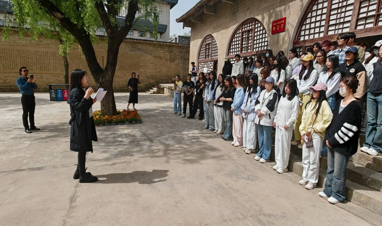 在边区政府旧址,卜姣老师以“经济突围中的红色税收”为主题展开现场教学。她通过详实史料解读1941年皖南事变后边区税收政策的调整,货物税、营业税与盐税的灵活征收,发展了边区经济,又为抗战胜利提供了坚实保障。税制背后,是共产党人“公私兼顾”的治理智慧与“人民至上”的初心。张龙文老师在总结中寄语学子:“会计人应传承边区工作者‘账目透明、廉洁奉公’的精神,让专业能力与红色信仰同频共振。”
