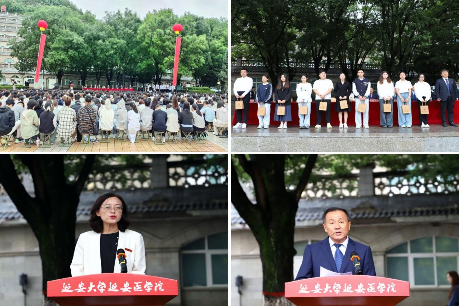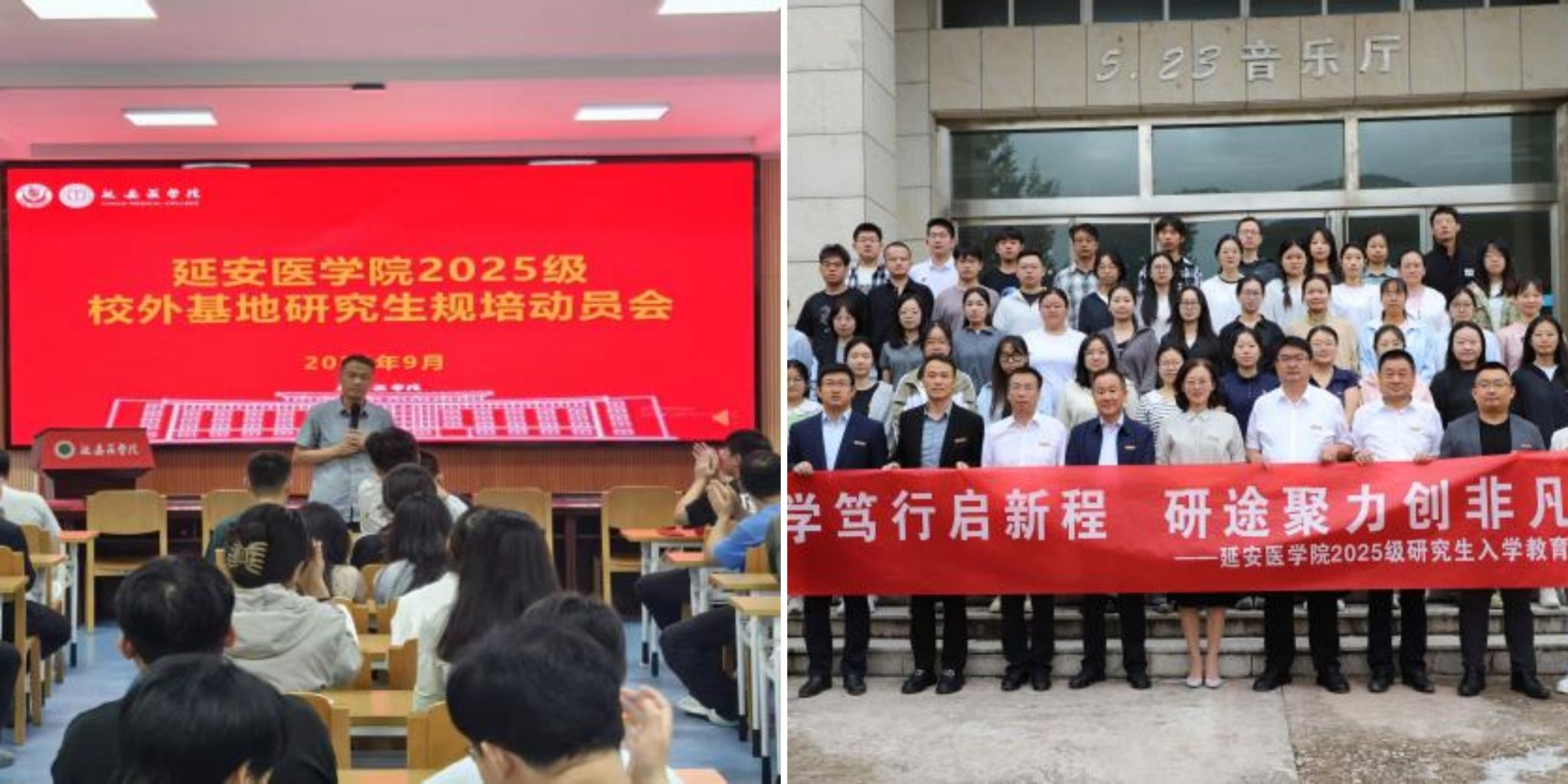 9月4日上午,杨家岭校区窑洞广场。与会老师们亲手为新生佩戴院徽,一代代延医人将“健康所系,性命相托”的誓言铭记于心,在救死扶伤的岗位上无私奉献,为护佑人民健康和国家医学事业发展作出了重要贡献。第41个教师节表彰同步举行,获奖老师集体转身,接受学生献上的鲜花与掌声。学院党委书记葛彬在主持中讲到“愿同学们铭记‘博学仁爱 精诚至善’的院训,常怀敬畏之心、同理之心、仁爱之心,恪守医德、坚守底线,做有温度的健康守护者,以青春之我、奋斗之我,书写无愧于时代的医学人生”。院长杨彦玲勉励大家“要心怀大爱,锤炼仁心;要精勤不倦,追求真知;要勇担使命,不负时代。努力在临床、科研、公共卫生等岗位上发光发热,成为党和人民信赖的医务工作者”。在《中国医学生誓言》回声里,2025级全体研究生举起右拳:“健康所系,性命相托……”声音掠过杨家岭的晨鸽,飞向陕北的沟沟壑壑。