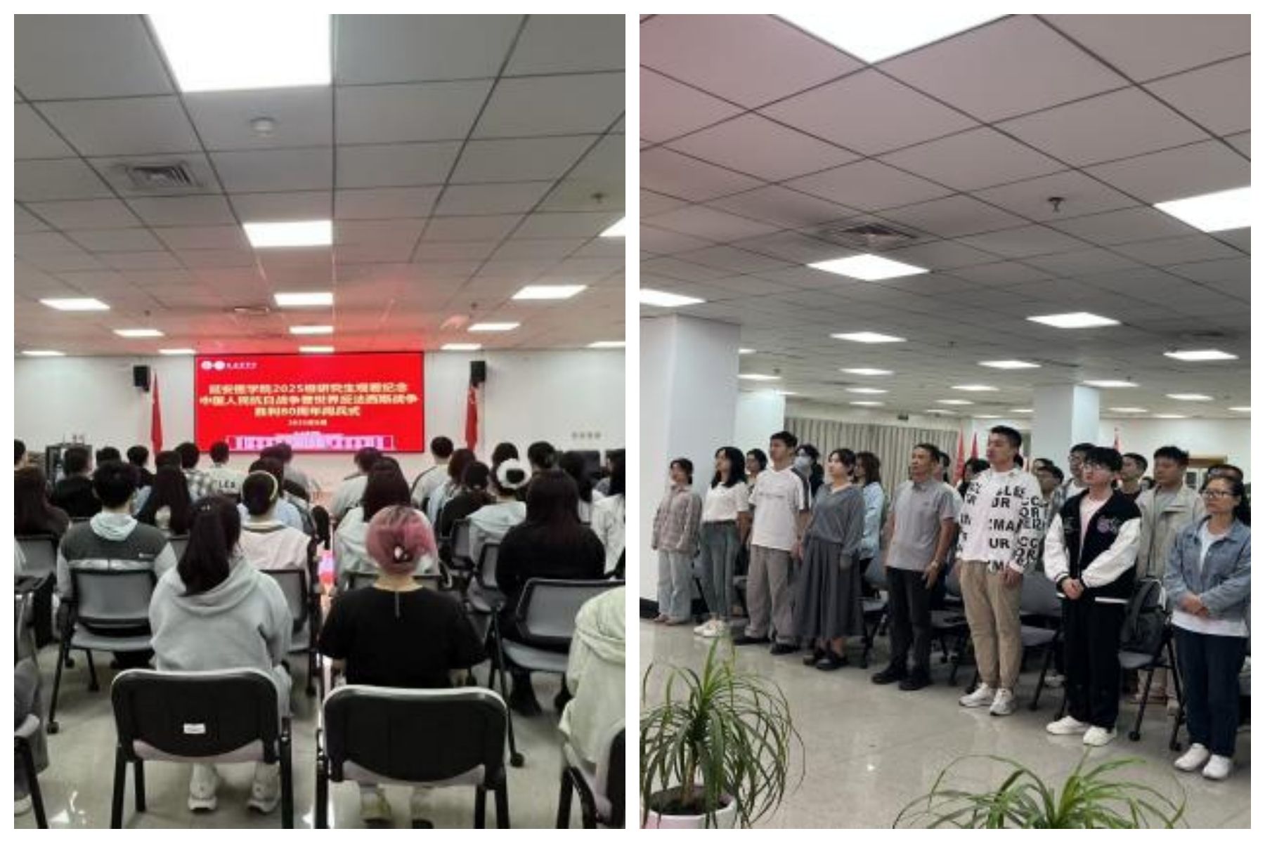9月3日上午,图书馆10楼。抗战胜利80周年阅兵铁流滚滚。当方阵经过天安门,全体新生自发起立敬礼。那一刻,阅兵跑道与手术台无缝衔接:钢枪与手术刀,同为守护;迷彩与白袍,同为誓言。直播结束,屏幕定格在“和平”二字,大家把签名写在横幅上——“请祖国放心,健康有我”。