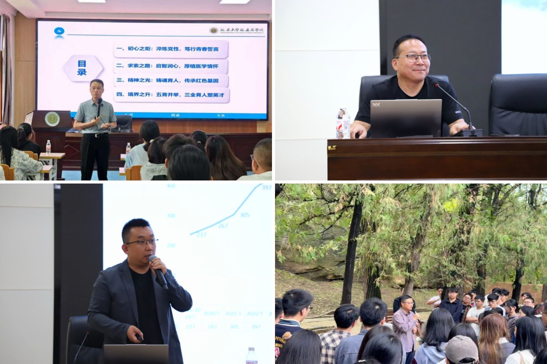 9月2日晚,学院党委副书记高曙光以《传承红色基因,培育医学栋梁》为题,从求索之路、精神之光、境界之升,讲述了学院的历史沿革和发展规划,介绍了研究生学生工作体系和成果,并激励同学们要厚植医学情怀,明确求学方向,做政治坚定、技术优良,人民信赖的圣地红医。9月3日下午张文生老师在杨家岭旧址前,以《延安“窑洞对”及其现实启示》为题,解读“历史周期率”与“人民监督政府”的内涵,勉励新生坚守医者初心,把老一辈革命家和共产党人留下的光荣传统和优良作风传承好、发扬好。9月3日晚,刘飞轮老师以《用延安精神淬炼灵魂》为题,讲述延安精神核心内涵,引导新生汲取奋进力量,将红色基因转化为实干担当的行动自觉。9月4日晚,研究生办公室主任张翔老师,围绕学位授予标准、规培细则、论文撰写等方面,全方位的讲述了学院研究生培养的现状与实力,帮助新生进一步明确目标与方向。