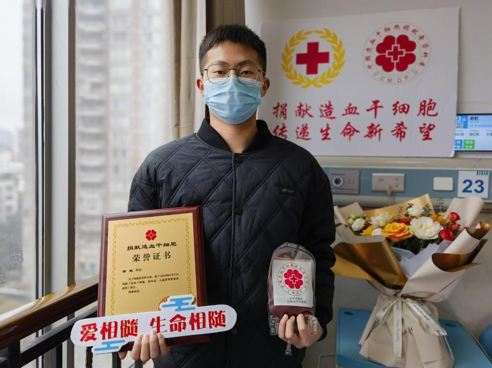 谢航同学在校期间学习成绩优异,荣获国家励志奖学金、第八届“互联网+”大学生创新创业大赛校级金奖,担任学校第九届国旗护卫队队长及暑期“三农三下乡”优秀支农队员,并时刻热心公益,参加过多次志愿服务活动。在2022年,他参加了学校组织的一场“造血干细胞采样”的活动,从那里得知移植造血干细胞可以挽救白血病患者的生命,那一刻便萌发了捐献造血干细胞救人的想法,当即留下血样,加入中国造血干细胞捐献者资料库中等待配型救人。2022年11月,当他得知与一名重度地中海贫血患者骨髓配型成功,他毅然决然填写了“志愿捐献同意书”和“志愿捐献者健康征询书”,并采集了5毫升血样进行检测,受疫情影响,于1月17日在家乡重庆完成了捐赠。