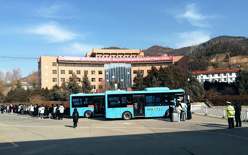 “我主要负责洛川县同学的返乡乘车工作。通过联系延安市联防办,学校和各县区的文体教育局实现了无缝对接,我们将各县区归家学生的准确数据报送给相关单位,并提前确定专车的数量及接送时间。”除郭忠义外,还有13名专职辅导员负责保障延安市内各县区的学生有序离校回家。13日全天,延安市内学生由家长来学校“点对点”接回,来自宝塔区、安塞区、志丹县、吴起县、子长县、延川县、宜川县、黄龙县、黄陵县、洛川县、甘泉县、富县的专车定点定时到校接送学子,让同学们享受到了从校园到家的一站式便利。