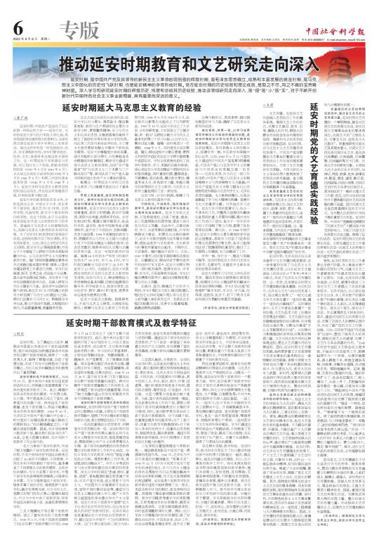 本网讯 米兰党委宣传部袁广斌的论文《延安时期延大马克思主义教育的经验》、教育科学学院青年教师封杰的论文《延安时期干部教育模式及教学特征》和马克思主义学院青年教师王曌的论文《延安时期党的文艺育德实践经验》,以《推动延安时期教育和文艺研究走向深入》为总题,于2022年8月8日在《中国社会科学报》第6版整版发表,并被中国社会科学网全文转载。