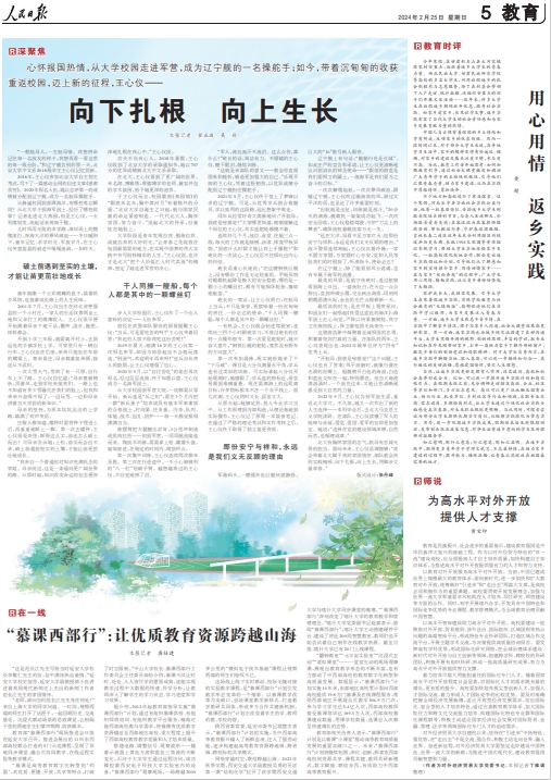 教育部相关负责人表示,“慕课西部行”计划是以慕课“小课堂”推动高等教育高质量发展的重要突破口之一。未来,“慕课西部行”计划将继续拓围、深化、创新,探索东西部高校间资源共享、课程共建、教师共研新模式,数字赋能、联结东西,有效助力中西部高等教育振兴。