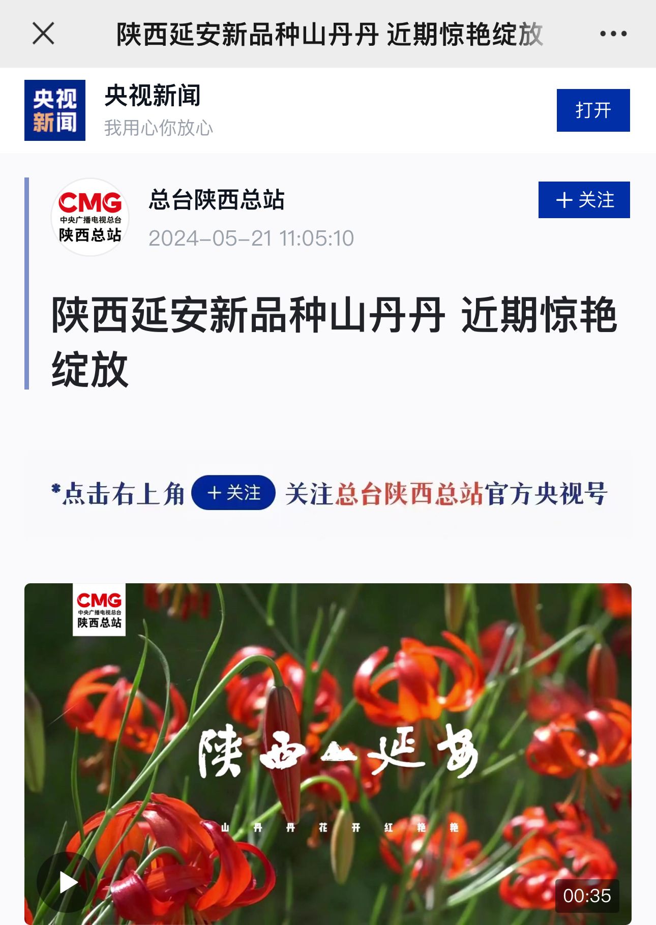 山丹丹新品种“523”完全盛放时,花瓣同时向尾部卷曲,宛如一盏盏红灯笼,花蕊则如灯笼下的流苏般垂挂,格外引人注目。