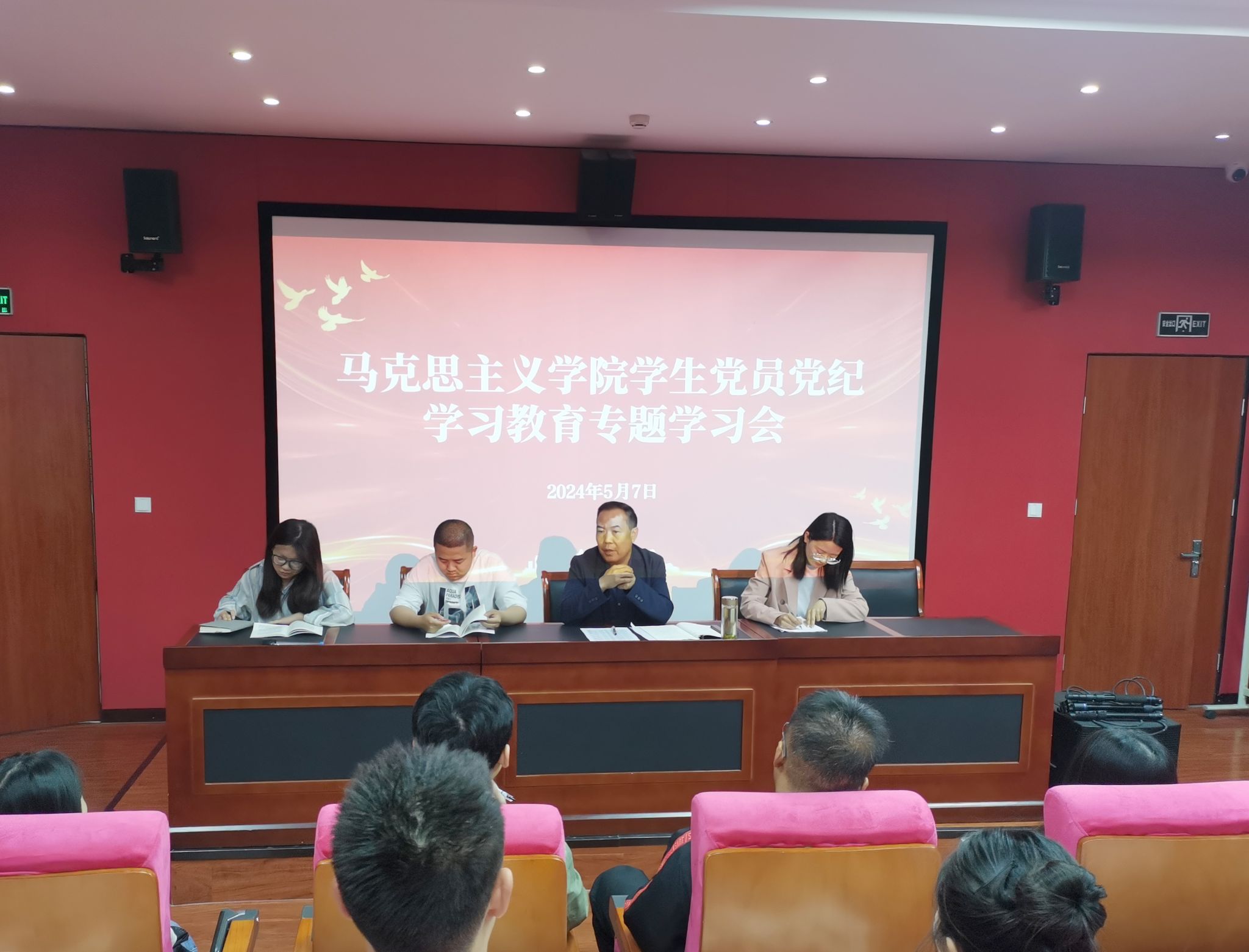 本网讯 为学习贯彻习近平总书记关于党纪学习教育的重要讲话和重要指示批示精神,落实《中共米兰milan官方网站马克思主义学院委员会关于开展党纪学习教育的实施方案》,进一步严肃党纪作风,加强学生党员队伍建设,强化学生党员纪律意识。5月7日上午,我院在学院一楼报告厅召开学生党员党纪学习教育专题学习会。研究生党支部书记苗玉园、本科生党支部书记贺宁宁、全体学生党员参加了会议。会议由学院党委常务副书记张彬主持。