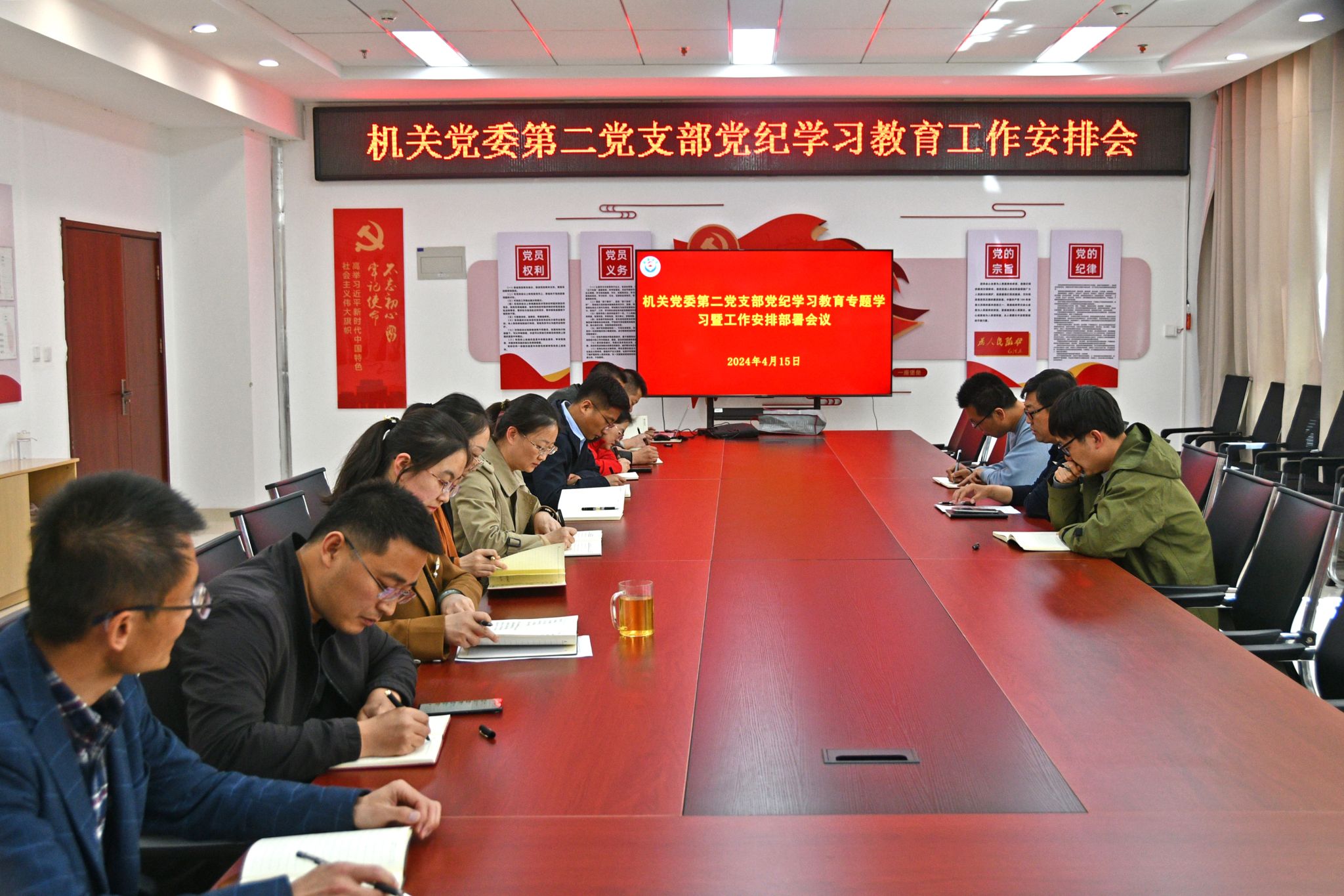 本网讯 4月15日下午,机关党委第二党支部在机关党委党员活动室召开党员会议,传达学习校党委党纪学习教育专题学习暨工作安排部署会议精神,安排部署党支部党纪学习教育。会议由党支部副书记刘有锋主持。