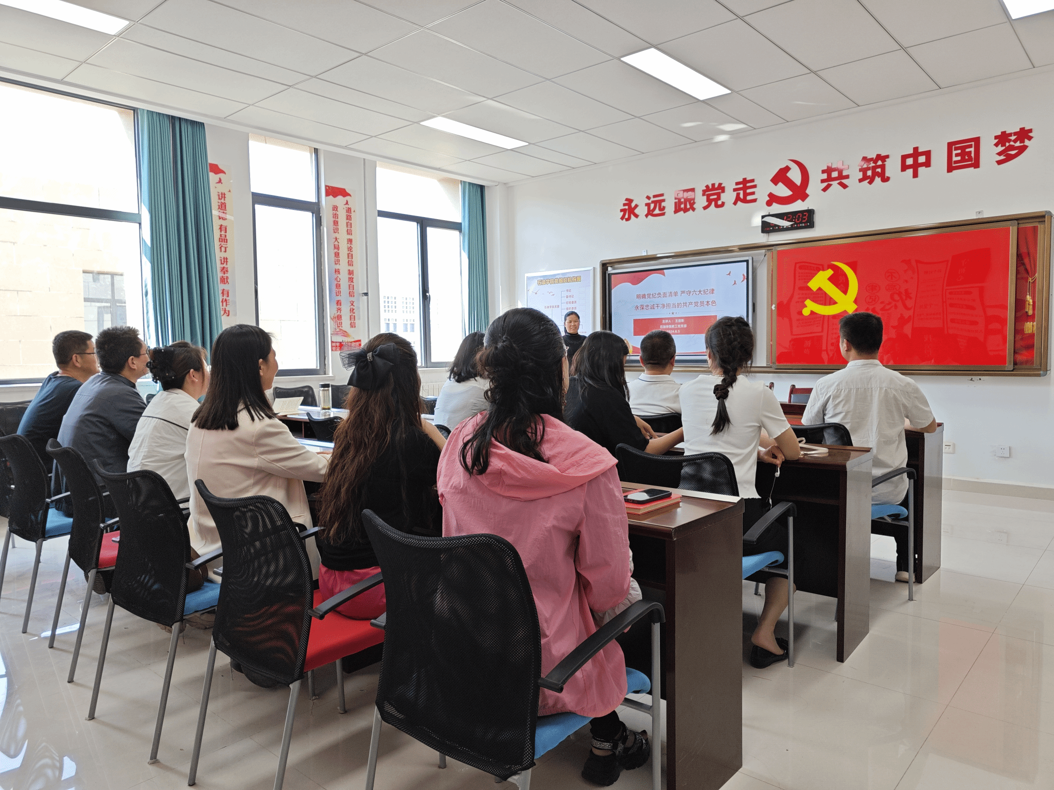 本网讯 为推动党纪学习教育走深走实,6月5日下午,石油学院教工党支部石油工程系全体党员在党建活动室开展活动,党支部书记王丽影作了题为“明确党纪负面清单 严守六大纪律 永葆忠诚干净担当的共产党员本色”的主题党课。