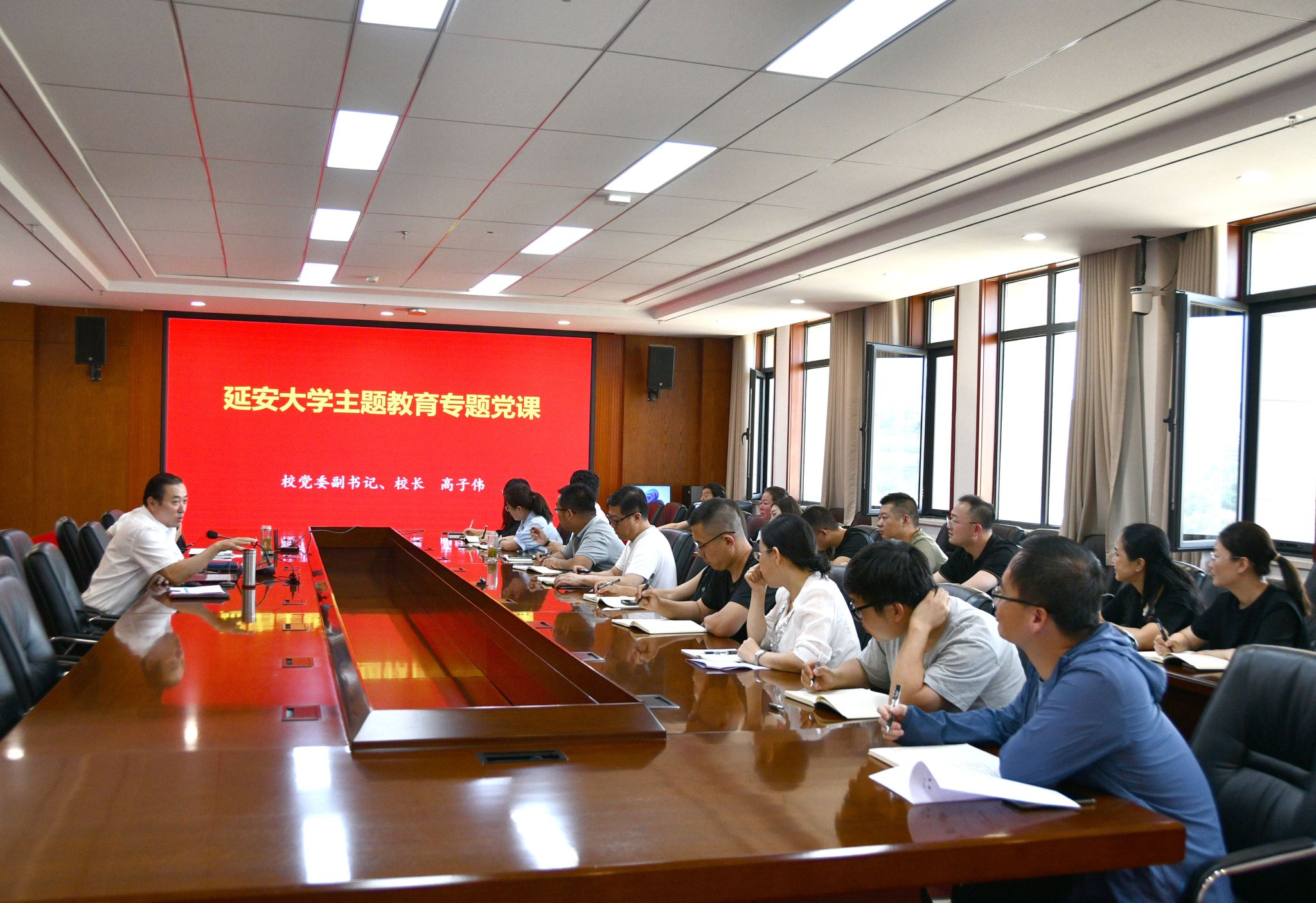 本网讯 按照主题教育安排,7月4日下午,校长高子伟在新城校区行政楼7楼会议室为机关党委第一、二党支部党员讲了主题为“学思悟透守初心,立足本职担使命”的党课。党课由党校办主任、第一支部书记李杨主持。