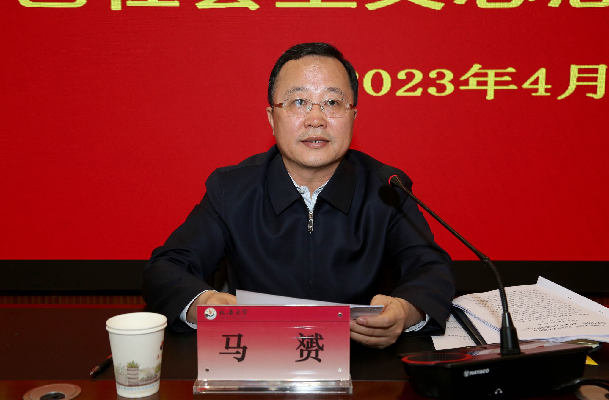 马赟对学校开展主题教育前期准备工作给予充分肯定,结合省委指导组工作职责,就落实主题教育各项任务提出了明确工作要求。一是切实提高思想认识。要在学习上再用力,准确理解开展主题教育的重大意义、根本任务、目标要求和方法措施;在认识上再深化,深刻认识此次主题教育是锤炼党性筑牢忠诚的政治之训,是武装头脑凝心铸魂的理论之训,是破解难题推动发展的实践之训,是自我革命纯洁队伍的作风之训;在站位上再提升,深刻领悟“两个确立”的决定性意义,坚决做到“两个维护”,更加自觉地在思想上、政治上、行动上同以习近平同志为核心的党中央保持高度一致。二要准确把握任务要求。深刻理解把握主题教育的总要求和根本任务,切实增强工作的针对性和实效性。要坚持学思用贯通、知信行统一,切实把习近平新时代中国特色社会主义思想转化为坚定理想、锤炼党性、指导实践、推动工作的强大力量,努力在以学铸魂、以学增智、以学正风、以学促干方面取得实实在在的成效。三要科学树立工作导向。坚持科学的方法论,突出目标导向、问题导向、效果导向,注重工作的系统性、整体性和协同性,把开展主题教育同贯彻落实党的二十大精神和党中央决策部署结合起来,同深入推进“三个年”活动结合起来,科学有序推动主题教育走深走实。四要贯通落实重点措施。按照主题教育要求,把理论学习、调查研究、推动发展、检视整改、建章立制贯通起来,有机融合、一体推进,要突出重点,抓住关键、统筹兼顾、整体推进,努力把每项工作做扎实做到位。五要坚决扛起落实责任。学校党委要自觉扛起主体责任,切实做到知责于心、担责于身、履责于行,对主题教育高起点谋划、高标准推进、高质量落实,以更强意识、更实举措、更优作风积极投身主题教育,把主题教育抓实抓好抓出成效。