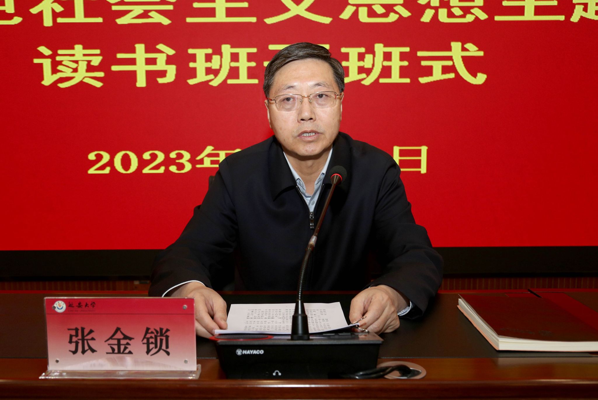 张金锁强调,要准确把握理论学习目的,增强学习的坚定性,努力在以学铸魂、以学增智、以学正风、以学促干上下工夫,通过系统的理论学习,从习近平新时代中国特色社会主义思想中汲取智慧,培塑“勤快严实精细廉”的优良作风,以学促干、以干促学,推动学校高质量发展提质增效。要科学运用理论学习方法,增强学习的针对性,坚持问题导向学、联系自身实际学、专心致志学,切实把理论学习成果转化为解决更有特色、更有水平大学建设难题的思路和举措,转化为更好履职尽责的能力,在专心致志的学习中取得实实在在的成效。要加强组织管理,增强学习的实效性,严格考核管理和请销假制度,积极营造浓郁氛围,正确处理好学习和工作的关系,保证学习时间,心无旁骛、集中精力多学习多思考,形成“好学、想学、真学、深学、比学、实学”的学习氛围,高质量完成学习任务。
