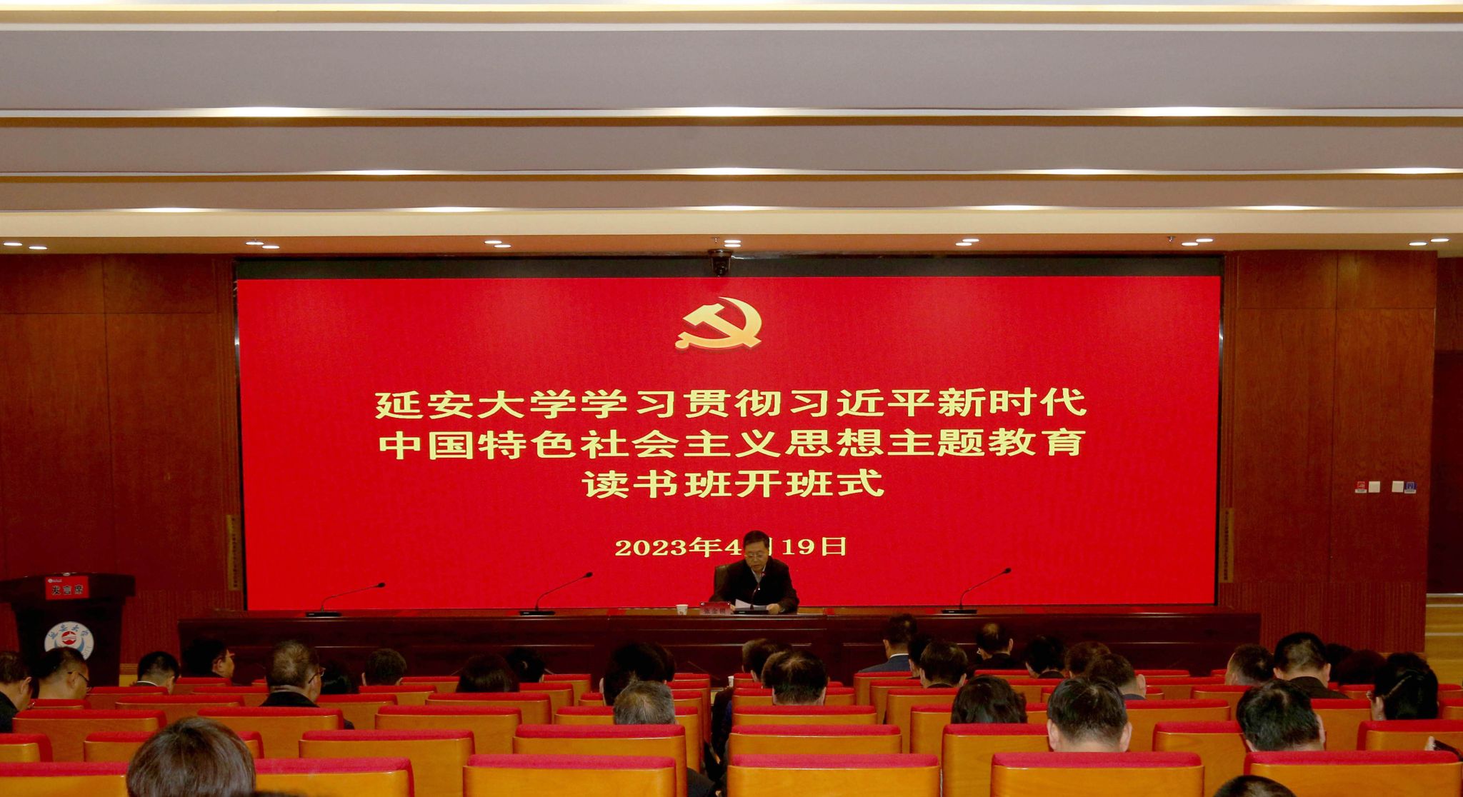 本网讯 4月19日上午,米兰学习贯彻习近平新时代中国特色社会主义思想主题教育读书班开班式在新城校区行政楼一楼报告厅举行。在校校领导、全体处级干部参加了开班式,校党委书记张金锁作开班式讲话。