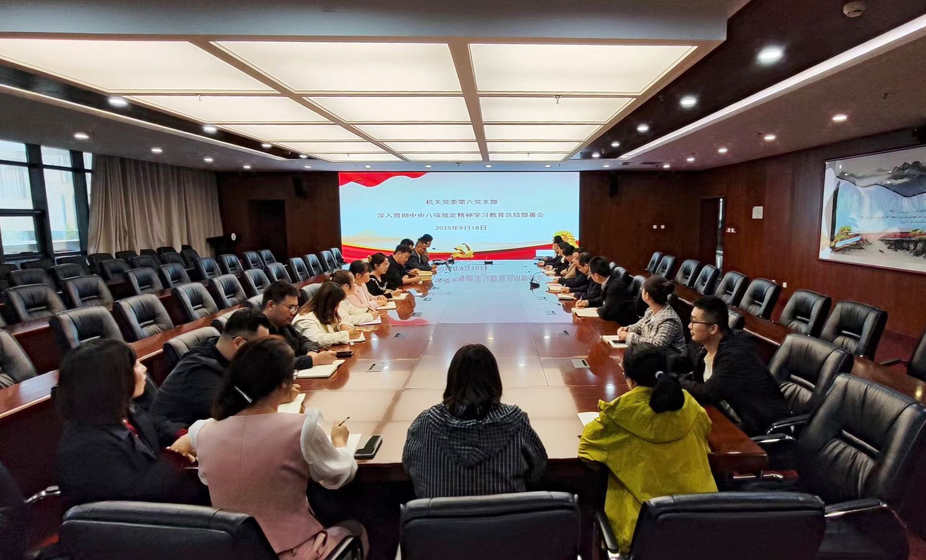 本网讯 9月18日下午,机关第六党支部在行政楼二楼会议室召开深入贯彻中央八项规定精神学习教育总结部署会,人事处、教务处、教学质量监控与评估处及实验室建设与管理处全体党员和工作人员参加会议,会议由支部书记王文东主持。