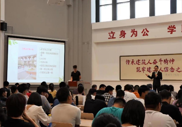 在日常教学中深度融会贯通延安精神“一体两翼”育人模式,认真开展“红色建筑人红色建筑物”宣介活动。2021年举行了“传承建筑人奋斗精神,筑牢建工人信念之基”建筑名家宣介会,参演师生通过宣讲、朗读、情景剧等多种方式,对梁思成、茅以升、杨作材、张锦秋等十位建筑名家在建筑、土木、桥梁等方面做出的突出贡献和生平事迹进行了展示,引导全院师生学习建筑名家身上的优秀品质。