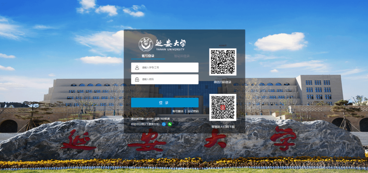 2.点击右上角登录,进入延安大学统一身份认证界面电子资源校外访问平台已和学校统一身份认证平台对接广大师生通过统一身份认证平台进行登录即可登录界面如下图所示