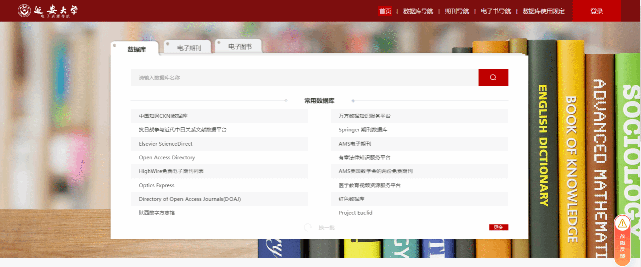 3.登录成功后,自动返回米兰milan官方网站图书馆电子资源导航页面广大师生即可对米兰采购和试用的电子资源进行访问。