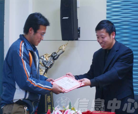 会上,副主任佘占宏宣读了近三个月来成绩突出的网站记者名单,并由信息中心主任杜红荣向获奖的记者颁发荣誉证书。信息中心主任杜红荣、副主任佘占宏分别强调了网站记者的重要性并对下学期工作进行了安排。
