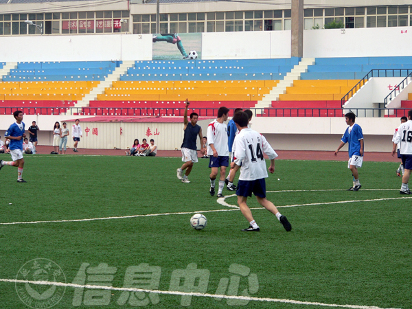(本网讯) 6月5日下午,米兰二○○六年激情大学生足球联赛在体育场拉开战幕,首场比赛在体育学院代表队和经管学院代表队之间进行。
