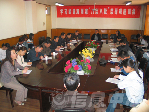 3月31日,米兰各界群众在逸夫楼314会议室召开学习胡锦涛总书记关于“八荣八耻”的重要讲话精神专题座谈会。