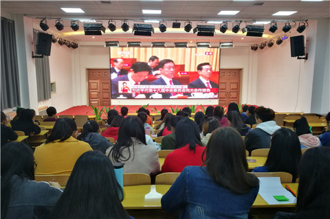 本网讯 今天上午9时整,中国共产党第十九次全国代表大会在北京隆重开幕。创新学院组织全体处级以上管理干部及学生200余人分别在学院第二会议室和大学生活动中心集中收看开幕会。