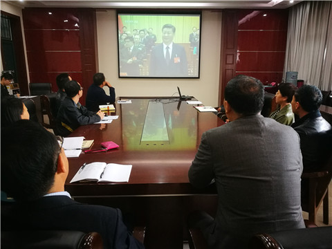 在集中收看现场,大家认真聆听习近平总书记代表第十八届中央委员会向大会作的题为《决胜全面建成小康社会 夺取新时代中国特色社会主义伟大胜利》的报告。现场不时发出阵阵掌声,大家认真做好笔记,领会报告精神。