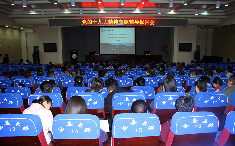 薛义忠书记在总结讲话中指出,高尚斌院长在报告中从坚定中国自信、把握八个明确、贯彻基本方略、落实重大部署四个方面,深入浅出地解读了党的十九大精神的政治意义、历史意义、理论意义和实践意义,为与会领导干部深入学习、领会党的十九大精神的核心要义,提供了有益的借鉴和帮助。薛义忠书记对全校进一步贯彻学习党的十九大精神提出了四点要求:一是坚持马克思主义的学风,以马克思主义的立场、观点、方法,认真研究思考人民群众关切的诸多重大现实问题,切实把理论和实践、历史和现实、当前和未来结合起来,多思多想,努力把党的十九大精神的政治意义、历史意义、理论意义、实践意义学深悟透,并知行合一,落实到更有特色、更有水平的办学实践上来;二是坚持以上率下,各级党组织要将学习党的十九大精神作为第一堂党课、第一堂政治必修课,制定系统学习计划,列出专题进行研讨;三是坚持三个结合,要做到学习宣传贯彻党的十九大精神与“两学一做”学习教育常态化制度化、与贯彻习近平总书记重要批示精神、与完成年度工作目标任务和谋划2018年工作相结合。