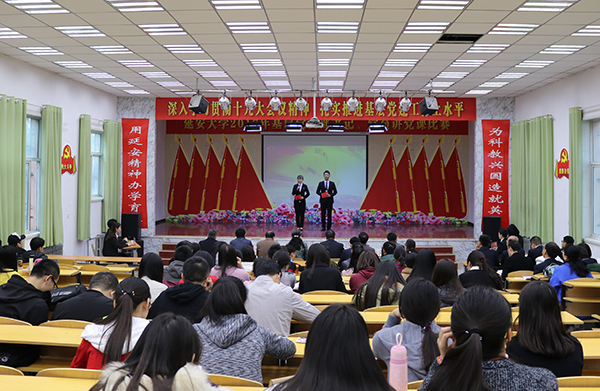 本网讯 为深入学习贯彻党的十九大精神,推进“两学一做”学习教育常态化制度化,扎实推进基层党建上水平,11月3日和5日,由党委组织部主办、政法学院党委承办的2017年基层党支部书记和学生党员讲党课比赛的复赛和决赛先后在克阿楼礼堂举行。党委组织部原处级调研员薛美玲、泽东干部学院院长拓宏伟、化工学院党委书记舒永安、学工部副部长张翔、马列学院副院长李宏斌、政法学院副院长邹腊敏、文学院副教授王延雄、组织部副部长郭伟等先后担任复赛和决赛评委。校党委副书记王顺,部分基层党委、党总支书记和副书记,学生党支部书记以及第51期入党积极分子等观摩了比赛。
