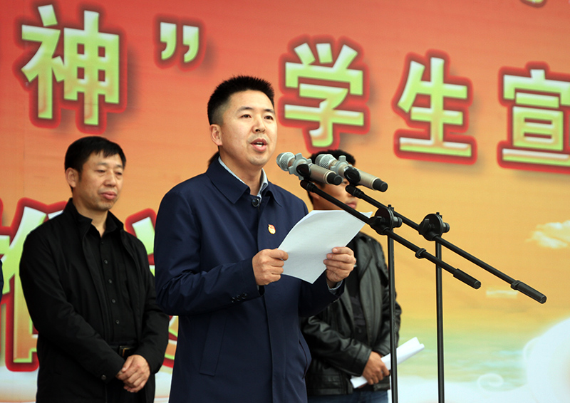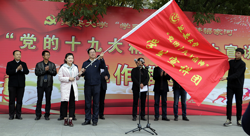 随后,田伏虎副书记为宣讲团授了旗,宣讲团团长、历史系学生苑志鑫同学接了旗。