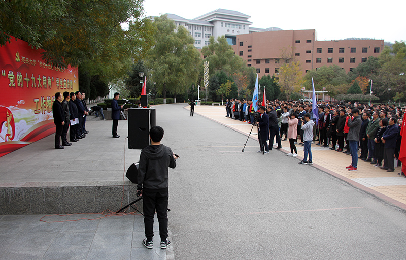 本网讯 为了深入学习、宣讲、贯彻党的十九大精神,进一步推进学生宣讲团的工作开展。11月6日下午,米兰在窑洞广场举行了“党的十九大精神”学生宣讲团工作推进会。校党委副书记田伏虎,学工部、校团委、宣传部、组织部、教务处、研究生处相关部门负责人,各院系副书记、辅导员、全体学生宣讲团成员以及学生代表600余人参加了推进会。推进会由学工部部长高峰主持。