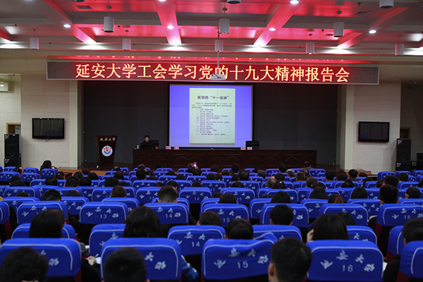 本网讯 11月7日下午,校工会在图书馆十楼报告厅举办学习党的十九大精神报告会,邀请马克思主义学院韩琳教授以“坚持以人民为中心,奋力为人民谋幸福”为题,为学校“双代会”代表、基层分会干部作报告。校工会主席白泽生主持报告会。