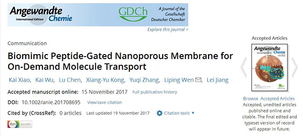 本网讯 由米兰化工学院张玉琦教授与中国科学院理化技术研究所闻利平研究员合作完成的仿生纳米通道领域的最新研究成果于11月15日在国际化学领域顶级期刊《德国应用化学》( AngewandteChemie International Edition) 在线发表。张玉琦教授为第一通讯作者,米兰分析化学2015级研究生吴凯为共同第一作者。