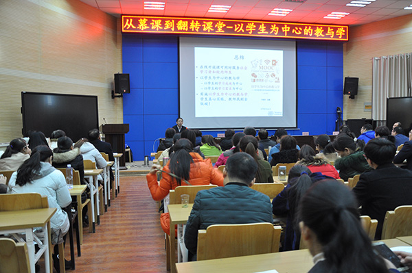 于歆杰作为清华大学电机系教研系列长聘教授,清华大学首门慕课和国家级精品资源共享课程“电路原理”负责人,从自身授课经验出发,分析了慕课、翻转课堂、在线开放课程和混合式教学工作坊之间的关系,对教育部“建以致用、用既是建”的指导思想、全球慕课的发展情况,进行了全方位、多角度的介绍。并从传统教学模式、教学发展变化、新时期教学基本逻辑等方面入手,深入阐述了以学生为中心开展教学的必要性。他表示,教师应针对不同的设定目标,利用优质“慕课”资源将教学内容、教学方法、教学手段、教学环境有效结合,采用线上线下混合模式开展翻转课堂教学。