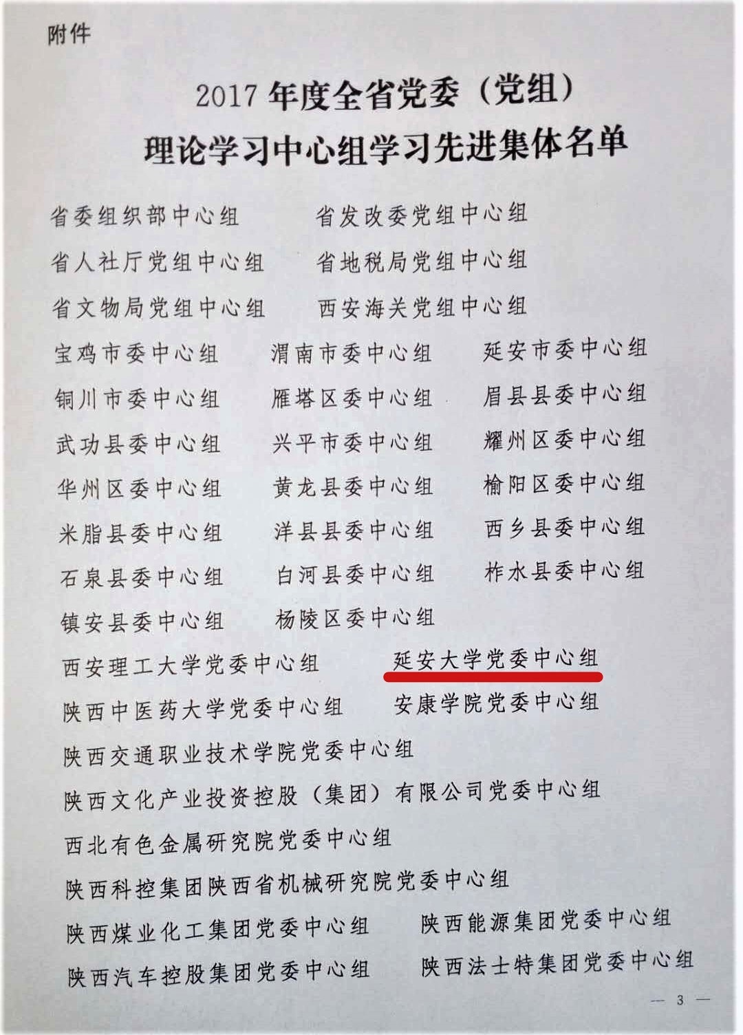 本网讯 1月10日,中共陕西省委宣传部和省委理论讲师团联合发文,对全省38个党委(党组)理论学习中心组进行表彰,米兰作为受表彰的五所高校之一,被授予“2017年度全省党委(党组)理论学习中心组学习先进集体”称号。这是米兰党委理论学习中心组首次获此殊荣。
