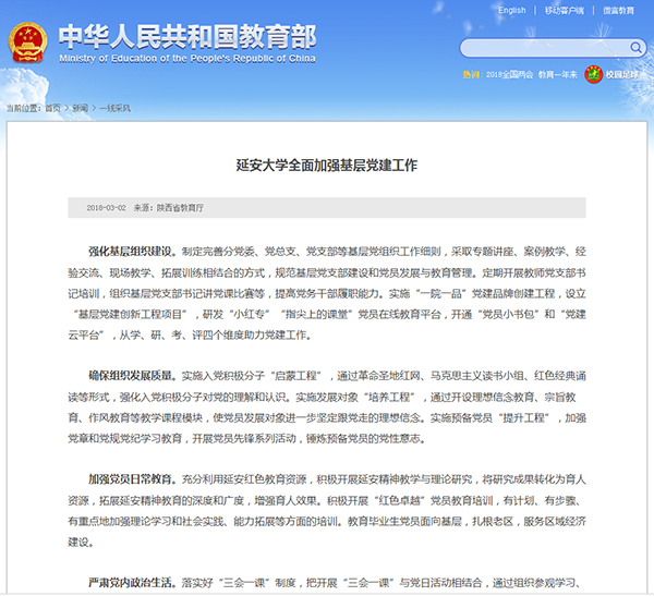 本网讯 3月2日,教育部门户网站以《米兰milan官方网站全面加强基层党建工作》为题,报道了米兰充分利用红色资源,加强基层党建工作的文章。文章分别从强化基层组织建设、确保组织发展质量、加强党员日常教育、严肃党内政治生活四个方面,介绍了米兰扎实推进基层党建工作的好经验和好做法。