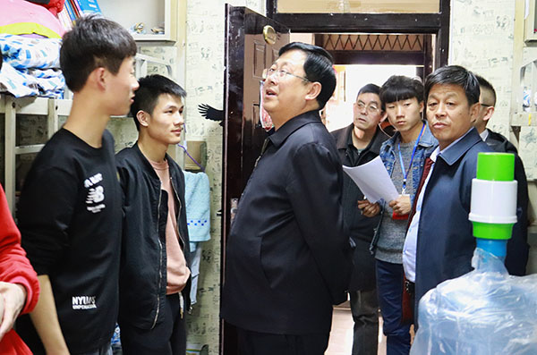田伏虎副书记重点对11号公寓楼进行了详细查看,他每到一个宿舍都和同学们亲切交谈,了解同学们生活学习、宿舍文化等方面情况,叮嘱同学们要高度重视宿舍用电安全、人身财产安全,积极培养独立自主意识,进一步做好宿舍卫生工作,同时要向优秀宿舍学习,提高宿舍文明建设。课余时间多去图书馆、去操场,拓宽知识,增强体魄,努力成为新时代自信活泼、全面发展的大学生。希望同学们共同维护宿舍安全、文明、和谐的良好氛围。他叮嘱各有关单位要进一步加强安全教育,加大管理力度,形成学生宿舍安全卫生检查长效机制。