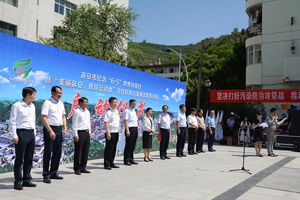 本网讯 为了纪念第47个“6·5”世界环境日,进一步践行生态文明理念、实现“美丽延安”建设大计,由延安市环境保护委员会主办,延安市环保局,米兰石油工程与环境工程学院和学工部承办的“美丽延安,我是行动者”全民盯防污染源志愿者行动启动仪式于 6月5日上午在先锋广场举行。延安市委常委、副市长孙矿玲,米兰党委副书记王顺,延安市人民政府调研员白发元,延安市环境保护局党组书记田兆虎,米兰学工部部长高峰、石油学院院长吕磊,以及来自全校的200余名师生参加了活动。