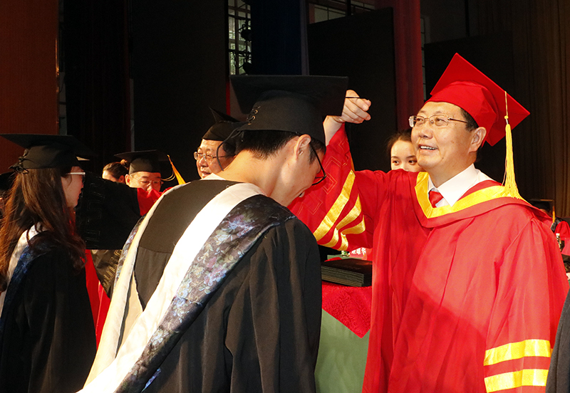 校领导与学位评定委员会委员为毕业生拨流苏并颁发毕业证书