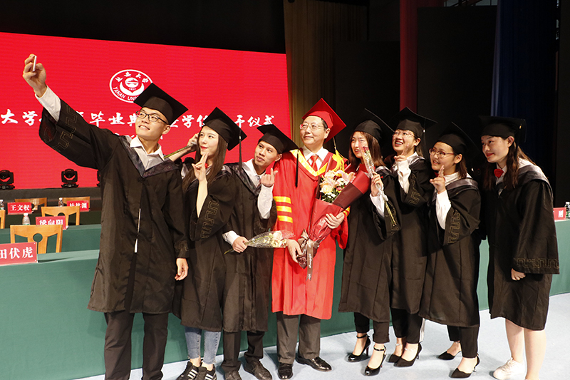 随后,2018届本科毕业生一一登上主席台,校领导和校学位评定委员会委员先后为毕业生拨流苏并颁发了学位证书。
