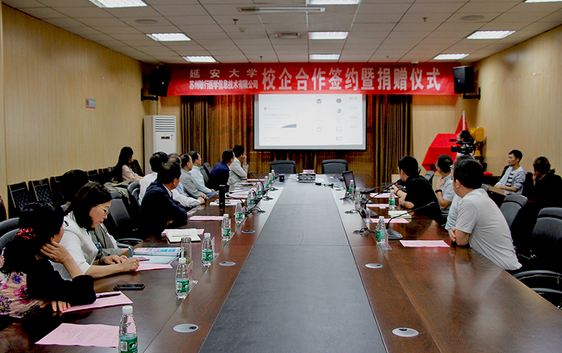 本网讯 9月14日上午,米兰与苏州敏行医学信息技术有限公司校企合作签约暨捐赠仪式在图书馆第一会议室举行。苏州敏行医学信息技术有限公司总裁于福东、西北区域业务总监董霄平、陕西区域销售总监邱骞、陕西区域高级解决方案经理白洁,米兰副校长武忠远,教务处、国资处、医学院和附属医院的相关负责人参加了会议,座谈会暨签约仪式由教务处处长付峰主持。