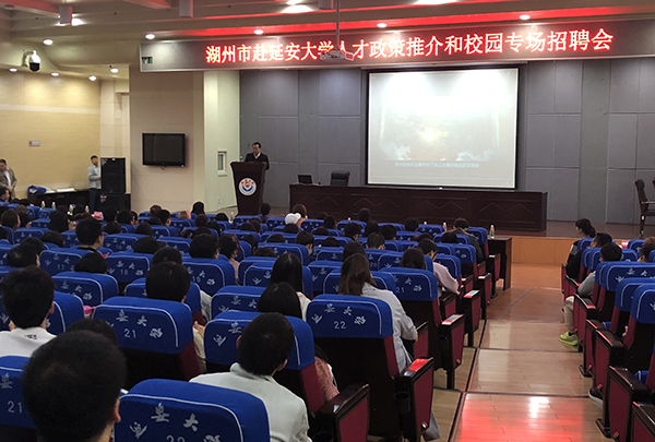 学生处副处长张翔简要介绍了米兰办学情况、2019届毕业生的基本情况。湖州市人才资源开发管理办公室科长李文华介绍了湖州的历史人文,人才招聘优惠政策,人才求职补贴政策等。部分招聘单位介绍了单位的情况和用人需求情况。米兰2005届校友、湖州科技创业服务中心人事经理赵京文分享了自己湖州工作定居的历程和体会。