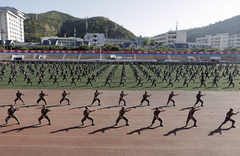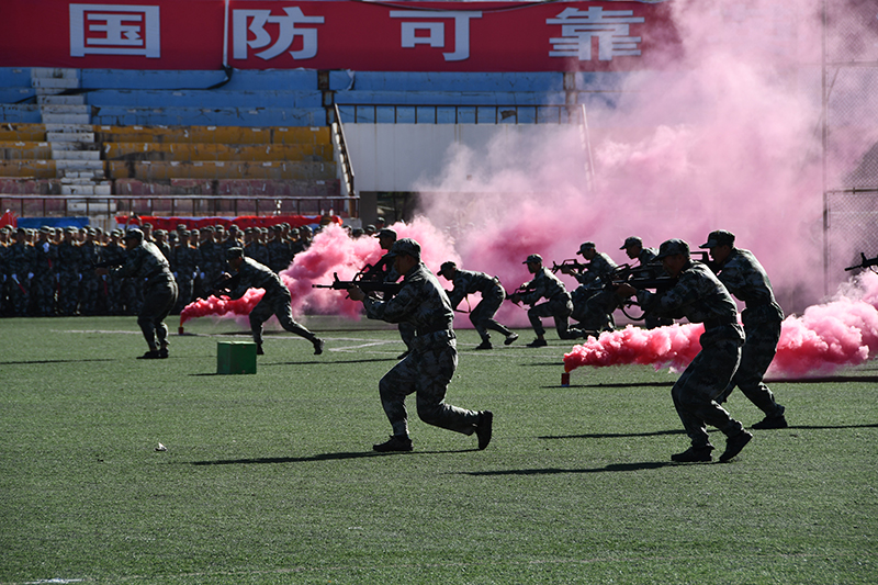 军训旅学员依次进行了军体拳、警棍术、队列操、匕首操、战术行动和战场救护的汇报展示。汇报表演铿锵有力、整齐划一,充分展现了延大学子斗志昂扬的精神风貌,也为老师及教官们交上了一份满意的军训答卷。