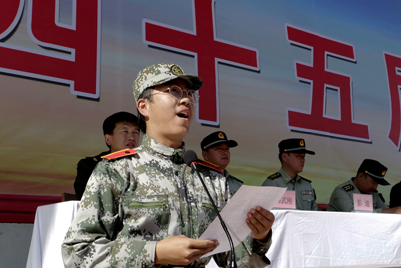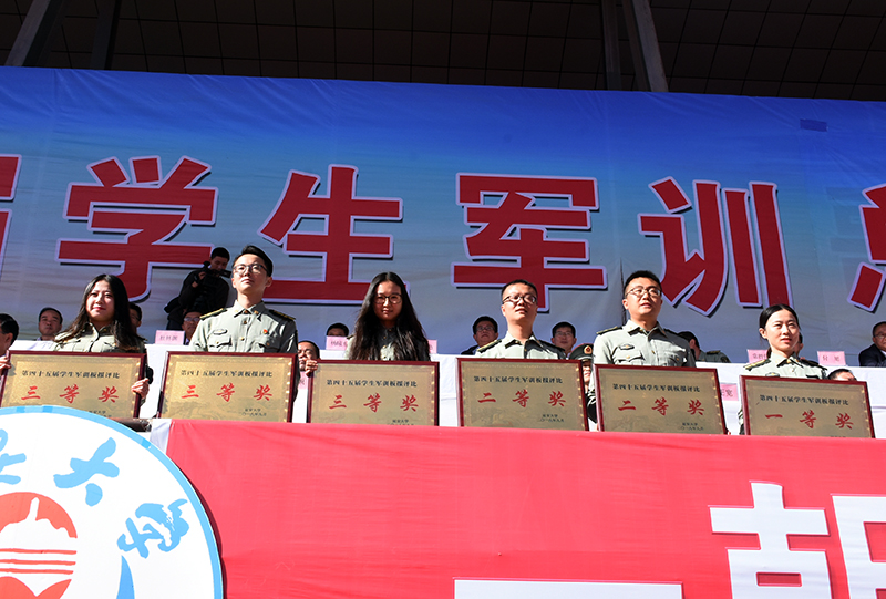 随后,校武装部副部长王彦杰宣读了第45届学生军训工作表彰决定。与会的校领导为获得军训内务评比、板报评比、歌咏比赛、军事训练优秀连队颁发了奖牌。来自建筑工程学院的马佳辉代表2018级军训学员发了言。军训旅旅长杜空军在讲话中指出,今年的军训本着“平时能应急,战时能应战”的要求进行了各个科目的训练,军事训练不仅提高了同学们的思想意识,也增强了同学吃苦耐劳的品德,希望同学们以军训为起点,在未来的学习和生活中能够艰苦奋斗、奋勇争先,以饱满的热情迎接大学生活,用优异的成绩报效祖国。